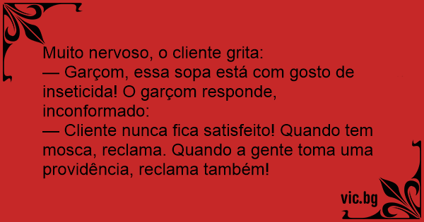 — Garçom, essa sopa está com gosto de inseticida! O garçom responde, inconformado: