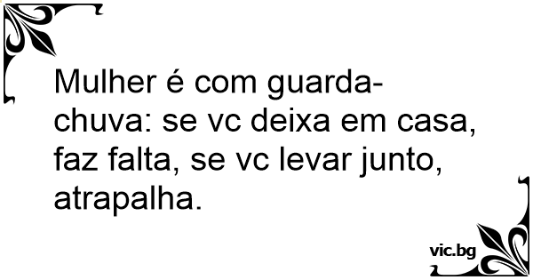 Mulher é com guarda-chuva: se vc deixa em casa, faz falta, se vc levar junto, atrapalha.