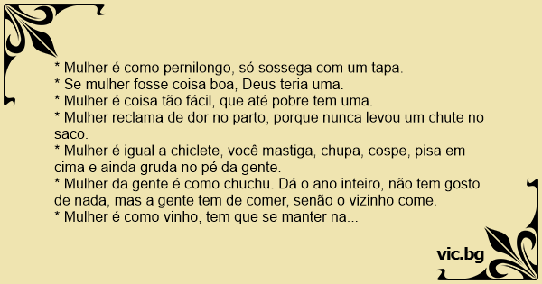 * Mulher é igual a chiclete, você mastiga, chupa, cospe, pisa em cima e ainda gruda no pé da gente.