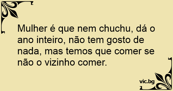Mulher é que nem chuchu, dá o ano inteiro, não tem gosto de nada, mas temos que comer se não o vizinho comer.