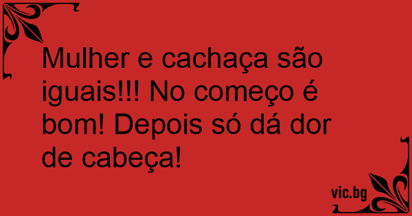 Mulher e cachaça são iguais!!! No começo é bom! Depois só dá dor de cabeça!