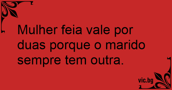 Mulher feia vale por duas porque o marido sempre tem outra.