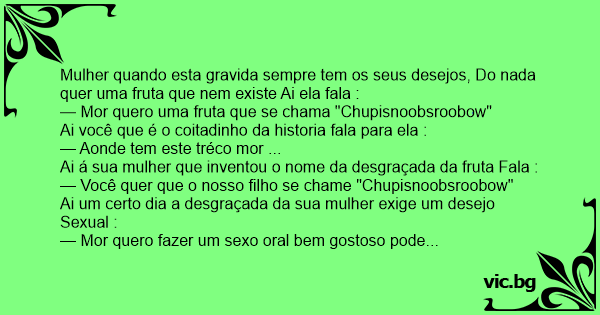 — Mais mor! Quer que o nosso filho naisce com uma cara de pênis Você triste né. Já mais iria querer que seu filho tivese um queixo еsсrото, e uma cara de pênis mal lavada, e rapidamente você diz :
