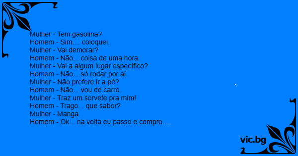 Mulher - Depois não... quero agora!...... .....(essa é típica).. Kkkkkkkkkkk!