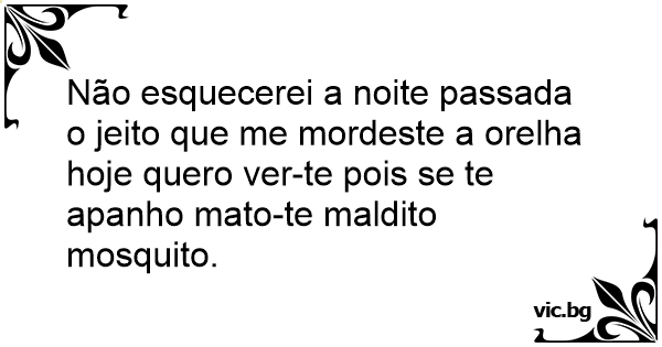Não esquecerei a noite passada o jeito que me mordeste a orelha hoje quero ver-te pois se te apanho mato-te маldiто mosquito.