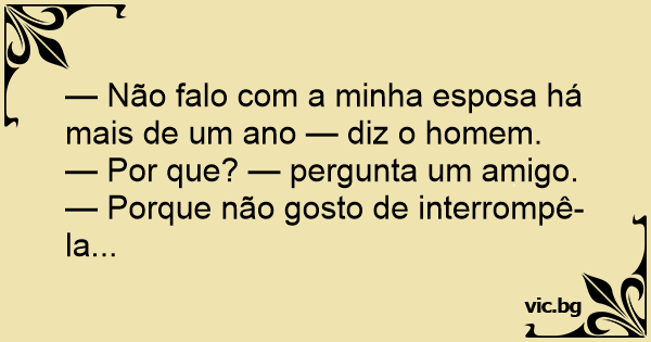 "Sai che ormai sono due anni che non parlo con mia moglie?!" Confida un uomo ad un amico. "Come? Non sapevo aveste litigato!" gli risponde l'altro. "No, no...non abbiamo litigato, è che non voglio interromperla!"