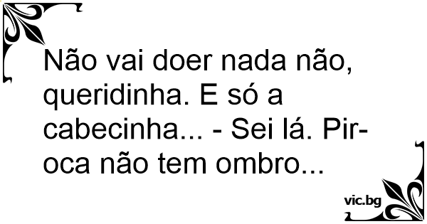 Não vai doer nada não, queridinha. E só a cabecinha... - Sei lá. Pir-oca não tem ombro...