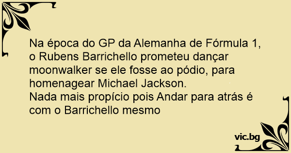 Na época do GP da Alemanha de Fórmula 1, o Rubens Barrichello prometeu dançar moonwalker se ele fosse ao pódio, para homenagear Michael Jackson.