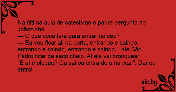 Na última aula de catecismo o padre pergunta ao Joãozinho.