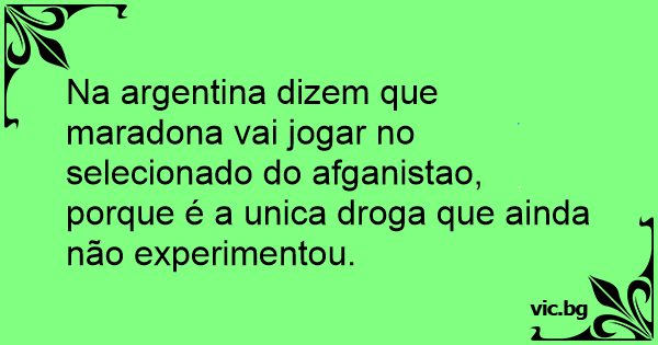 Na argentina dizem que maradona vai jogar no selecionado do afganistao, porque é a unica droga que ainda não experimentou.