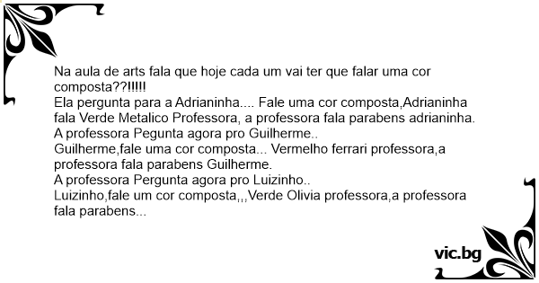 Na aula de arts fala que hoje cada um vai ter que falar uma cor composta??!!!!!