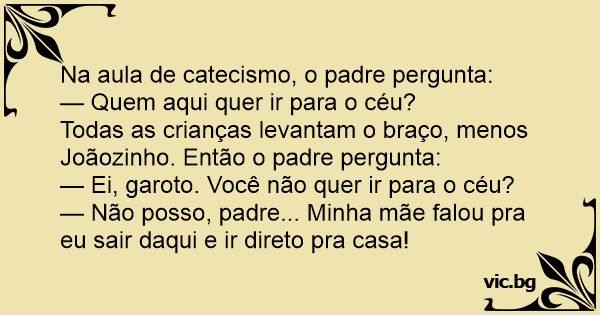 Todas as crianças levantam o braço, menos Joãozinho. Então o padre pergunta: