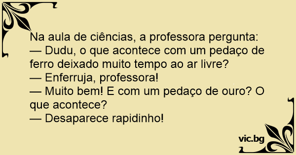 — Dudu, o que acontece com um pedaço de ferro deixado muito tempo ao ar livre?