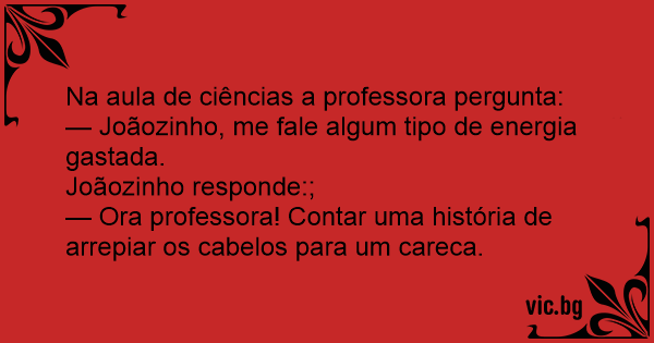 — Ora professora! Contar uma história de arrepiar os cabelos para um careca.