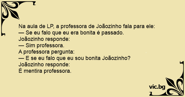 Na aula de LP, a professora de Joãozinho fala para ele: