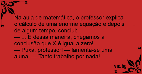 Na aula de matemática, o professor explica o cálculo de uma enorme equação e depois de algum tempo, conclui: