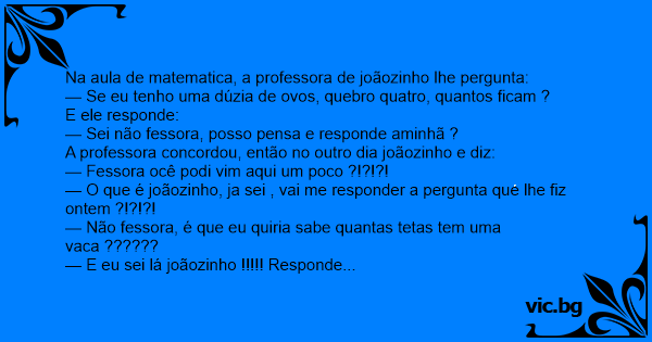 — E eu sei lá joãozinho !!!!! Responde a professora.