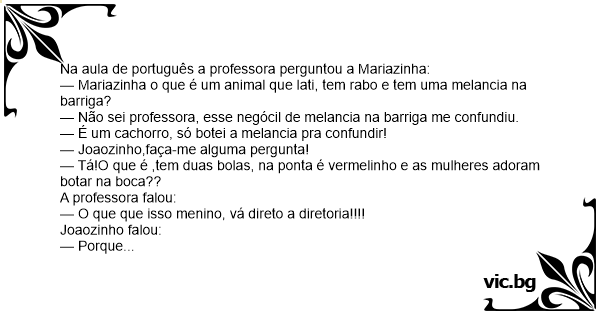 — Porque professora?Eu a resposta é batom, eu só botei as duas bolas para confundir!!!