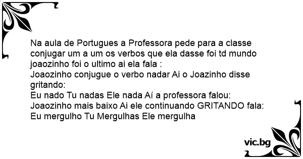 Na aula de Portugues a Professora pede para a classe conjugar um a um os verbos que ela dasse foi td mundo joaozinho foi o ultimo ai ela fala :