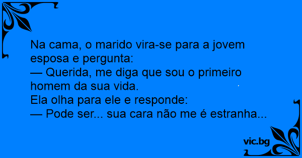 Na cama, o marido vira-se para a jovem esposa e pergunta: