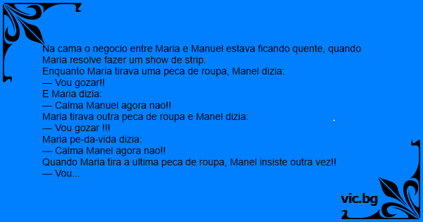 Enquanto Maria tirava uma peca de roupa, Manel dizia:
