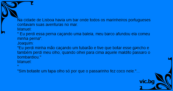 Na cidade de Lisboa havia um bar onde todos os marinheiros portugueses contavam suas aventuras no mar.