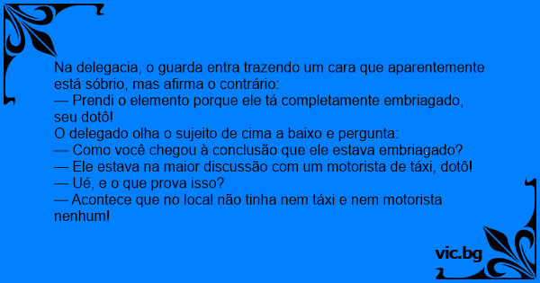— Prendi o elemento porque ele tá completamente embriagado, seu dotô!