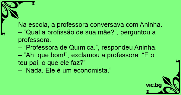– “Ah, que bom!”, exclamou a professora. “E o teu pai, o que ele faz?”