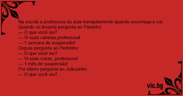 — Vi suas canelas,professora!