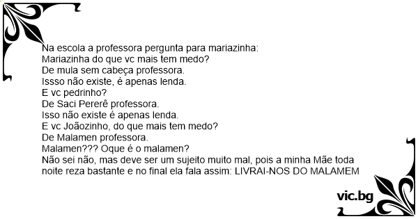 Na escola a professora pergunta para mariazinha: