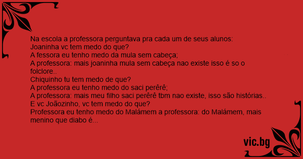 A fessora eu tenho medo da mula sem cabeça;