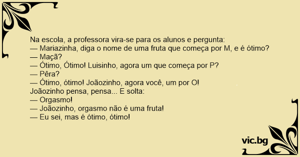 — Joãozinho, orgasmo não é uma fruta!