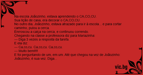 Na escola Joãozinho, estava aprendendo o CA,CO,CU.
