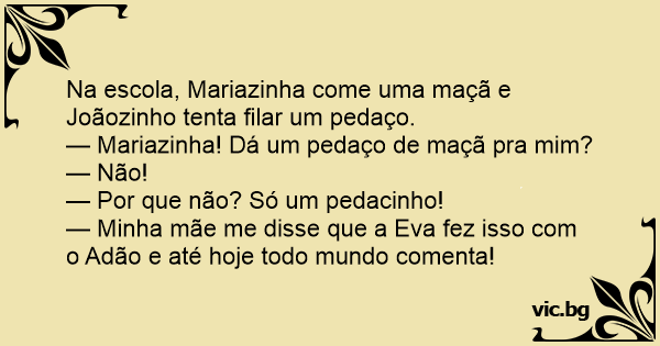 — Minha mãe me disse que a Eva fez isso com o Adão e até hoje todo mundo comenta!