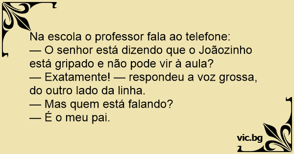 — O senhor está dizendo que o Joãozinho está gripado e não pode vir à aula?