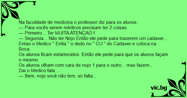 — Segunda... Não ter Nojo Então ele pede para trazerem um cadaver...