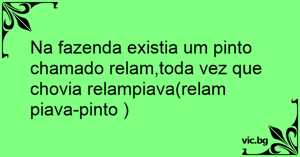Na fazenda existia um pinto chamado relam,toda vez que chovia relampiava(relam piava-pinto )
