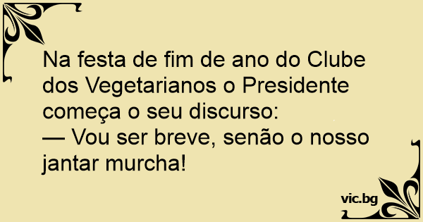 Na festa de fim de ano do Clube dos Vegetarianos o Presidente começa o seu discurso: