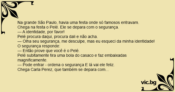 Chega na festa o Pelé. Ele se depara com o segurança.