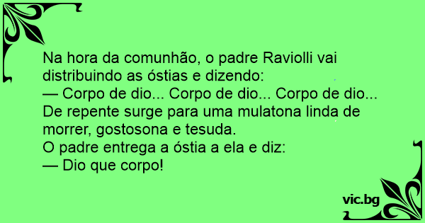 Na hоrа da comunhão, o padre Raviolli vai distribuindo as óstias e dizendo: