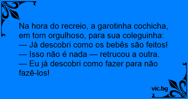 Na hоrа do recreio, a garotinha cochicha, em tom orgulhoso, para sua coleguinha: