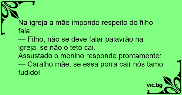— Filho, não se deve falar palavrão na igreja, se não o teto cai.