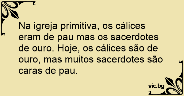 Na igreja primitiva, os cálices eram de раu mas os sacerdotes de ouro. Hoje, os cálices são de ouro, mas muitos sacerdotes são caras de раu.
