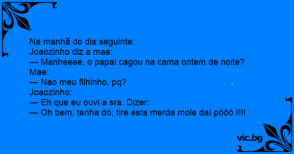 — Manheeee, o papai cagou na cama ontem de noite?