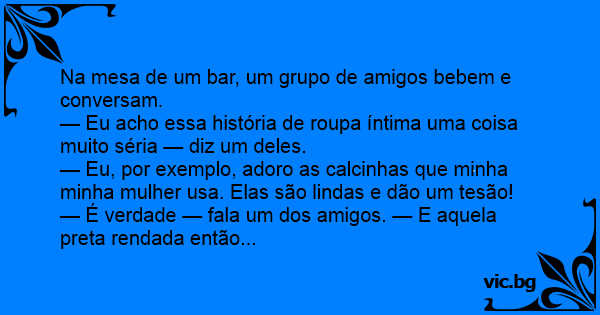 — Eu, por exemplo, adoro as calcinhas que minha minha mulher usa. Elas são lindas e dão um tesão!