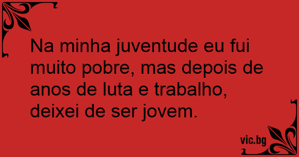 Na minha juventude eu fui muito pobre, mas depois de anos de luta e trabalho, deixei de ser jovem.
