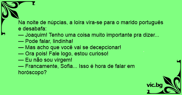 Na noite de núpcias, a loira vira-se para o marido português e desabafa: