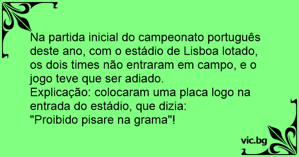 Explicação: colocaram uma placa logo na entrada do estádio, que dizia:
