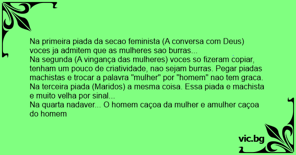 Na primeira piada da secao feminista (A conversa com Deus) voces ja admitem que as mulheres sao burras...