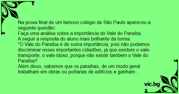 Na prova final de um famoso colégio de São Paulo apareceu a seguinte questão: